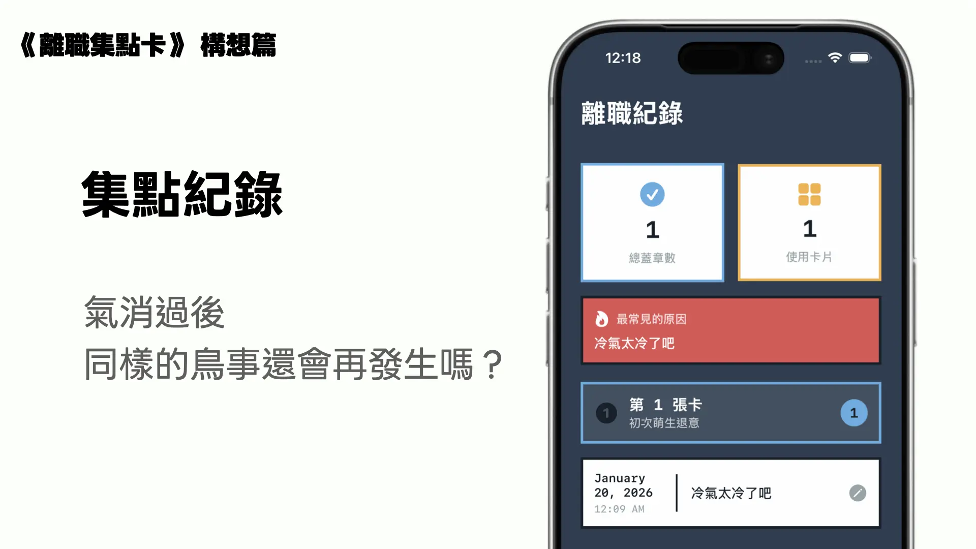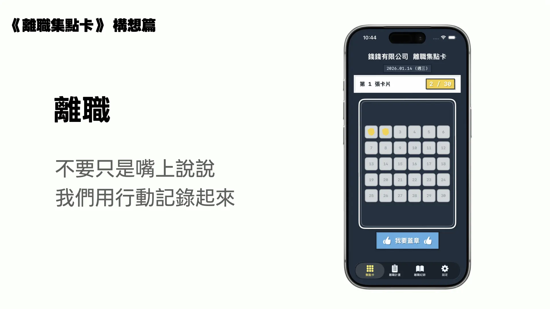 我想做的不是鼓勵衝動離職,而是把這些零散的情緒留下來,讓它變成可以被累積、被回頭檢視的東西。所以才有了「離職集點卡」這個概念。